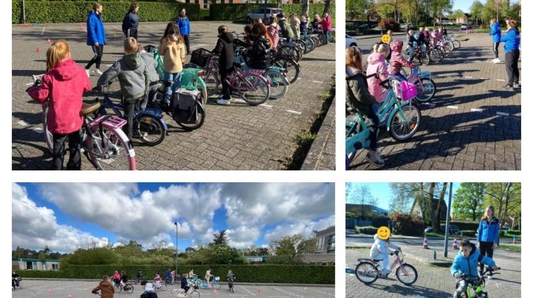 Groep 1-8 mocht hun fiets meenemen en kreeg op ons schoolplein/parkeerplaats voor onze school een leuke fietsles met allerlei opdrachten op een fietsparcours. i.s.m. Sport in Rheden