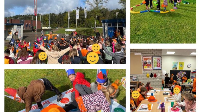 Na een gezellig koningsontbijt liepen alle groepen naar het sportveld. Hier waren door leerkrachten en hulpouders allerlei sportieve activiteiten klaargezet. Dit was een gezellige, feestelijke dag!